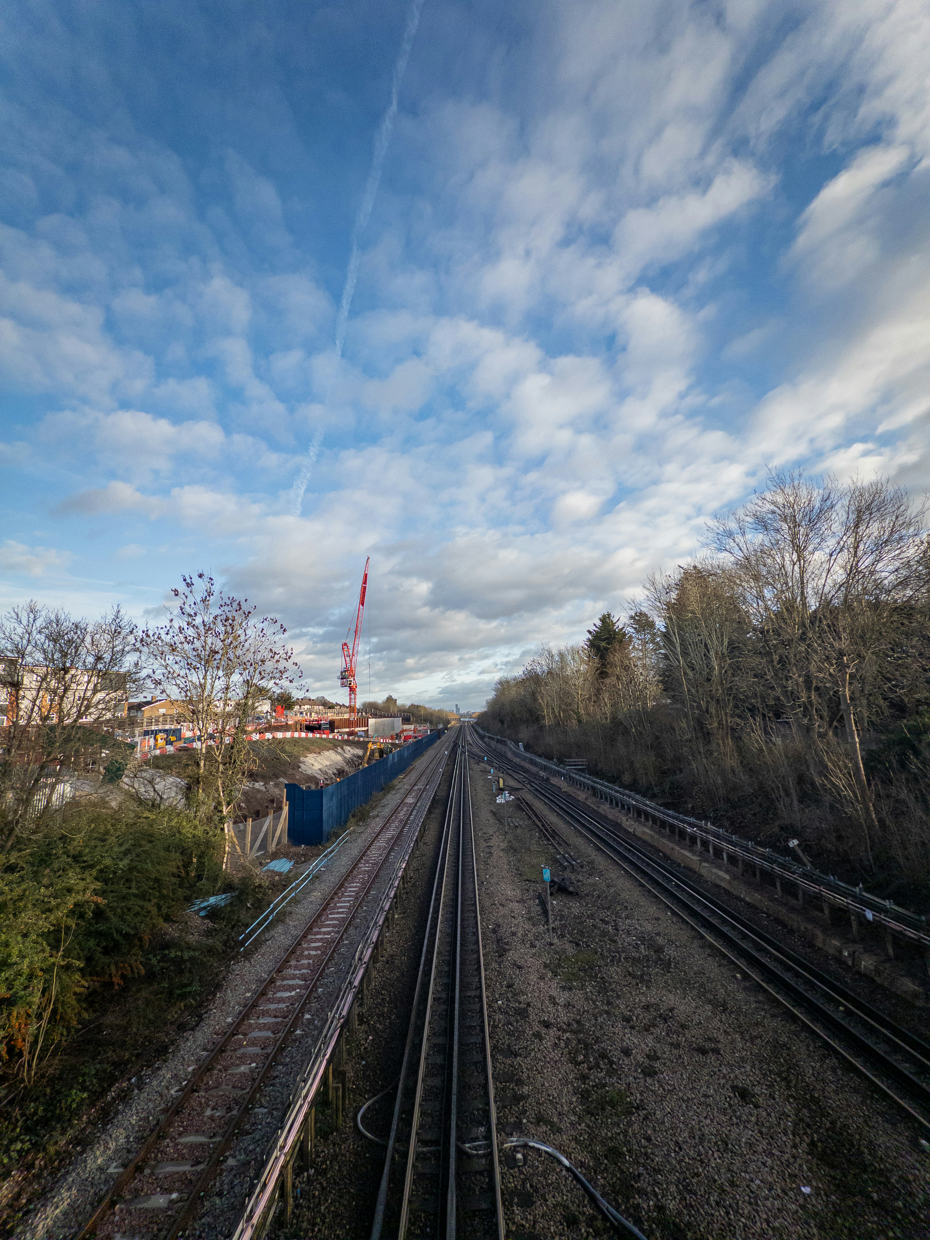 Dieser Abschnitt erläutert die komplexen Bauphasen und politischen Einflüsse auf die Bahn.